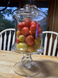 食育指導員のMoxaです 暑い毎日、いかがお過ごしですか? 私は野菜の水やり、野菜とブルーベリーの収穫といそがしく、手作りお菓子やパンは焼いていますが、 コラムを書けなないままひと月が過ぎてしまいました。 「旬の食材でお菓子作り」シリーズの夏バージョン。今回はお菓子じゃなくてスムージーです。 6月は庭で採れたスモモでスムージー。![]()