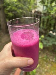 ビーツを買ってきて、皮付きで茹でて、皮を剥いてカットして冷凍しておきます。それでビーツスムージー。 ビーツは色がビタミンカラーで元気が出るので大好きです。