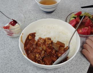 自分が切った野菜で作ったカレーやサラダを、たとえ苦手なしめじやトマトが入っていても、