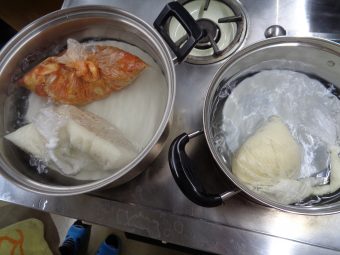 洛西支所食育指導員11期生のKです。 西京区児童福祉施設給食担当者連絡会に食育指導員2名が参加しました。 テーマは「災害に備えて今できること」で、前後半に分かれ、食育指導員は前半のパッククッキングによる調理実習のお手伝いと、 ご家庭向けのミニ講話を行いました。 湯煎に時間が掛かるので、まずは食育指導員によるパッククッキングの説明及びデモンストレーションを見ていただききました。 そして調理を開始。メニューは、パッククッキングで作る「ご飯、高野豆腐の炒り豆腐風、キャベツとツナの蒸し煮、蒸しパン」と、 混ぜ合わせるだけのきなこボーロです。 各2人分ずつの材料で、3グループに分かれ作っていただきました。 湯煎時間が長いご飯から始め、皆さん声を掛け合いながら和やかな雰囲気の中で作業されていました。![]()