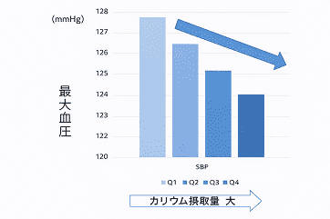 食塩のとり過ぎで、血圧は上がるけど、カリウムを多くとると、血圧は下がる