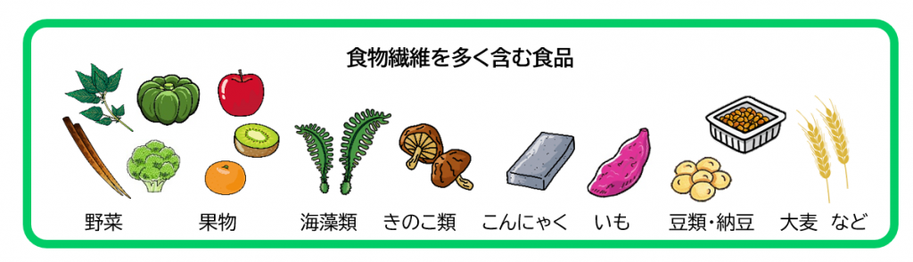 - 果物・芋・豆・野菜・海藻・きのこ類を増やし、適量の油も使ってみる。