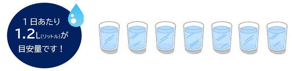 普段の食事以外で1~1.5リットル(コップ5~8杯程度)の水分補給を心がけましょう。